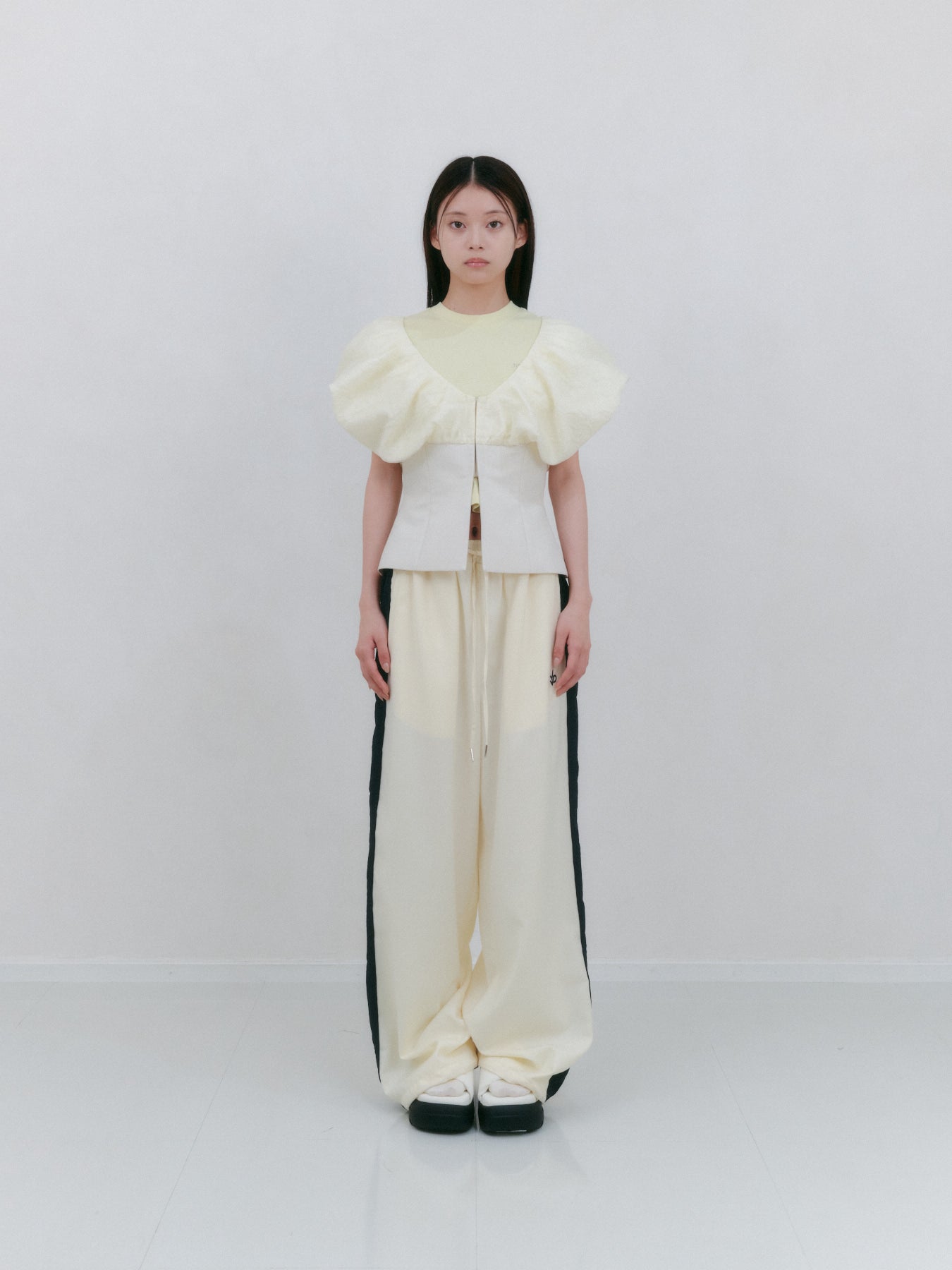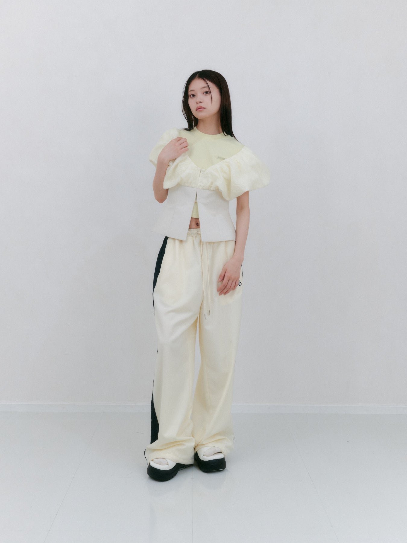 ゆったりとしたシルエットで動きやすく、快適に着られます。ウエストはゴムとドローコードで調節可能なので、お好みのフィット感でご着用頂けます。シンプルなTシャツやスウェットと合わせるだけで、トレンド感のあるコーディネートが完成します