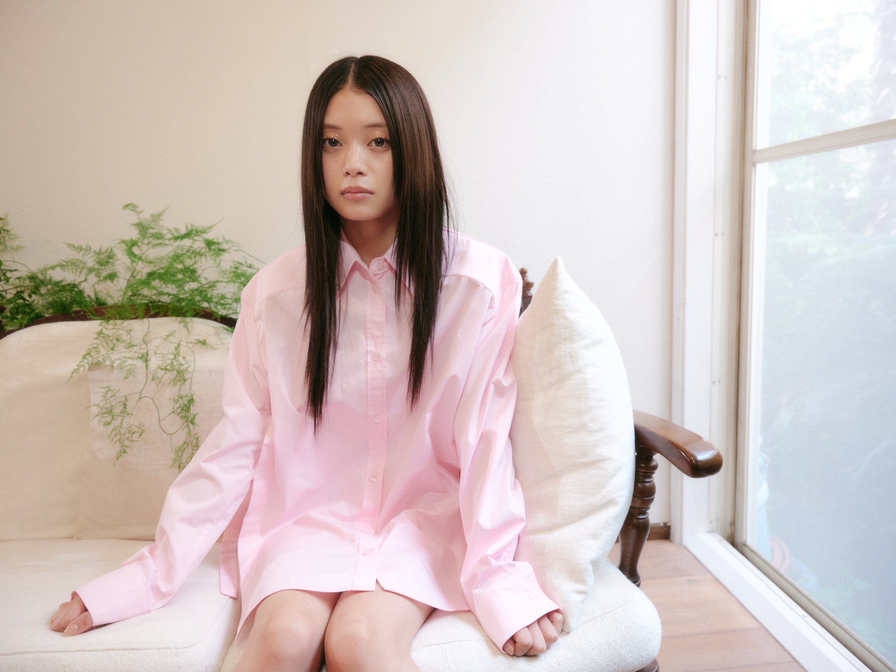 アシンメトリーな裾のデザインが特徴の、個性あふれるシャツです。サイドに入った大胆なスリットが、歩くたびに軽やかな動きを演出し、シンプルなボトムスに合わせるだけでもおしゃれなスタイルが完成します。